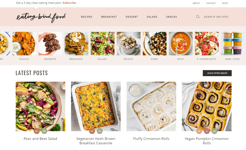 - “Half Baked Harvest” is a popular food blog with a mix of comfort food, healthy meals, and show-stopping desserts. You’ll find things like lower fat treats alongside easy bowls and game day snacks.