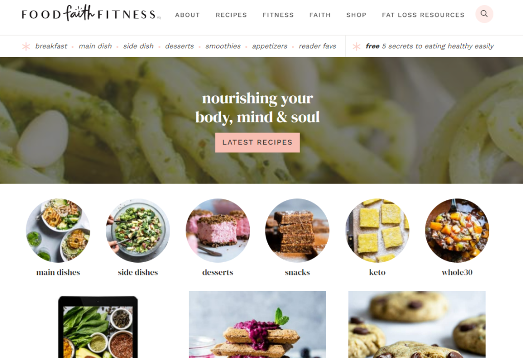 - “Food Faith Fitness” is a healthy food blog with a focus on nourishing, whole food recipes and easy weeknight dinners.