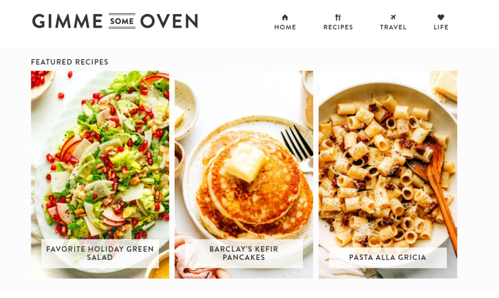 - “Gimme Some Oven” is a food blog with a mix of comfort food, healthy meals, and indulgent desserts.