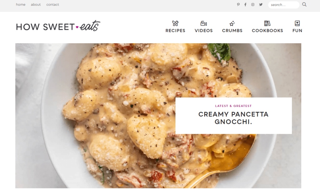 - “How Sweet Eats” is a food blog with a mix of comfort food, healthy meals, and indulgent desserts.