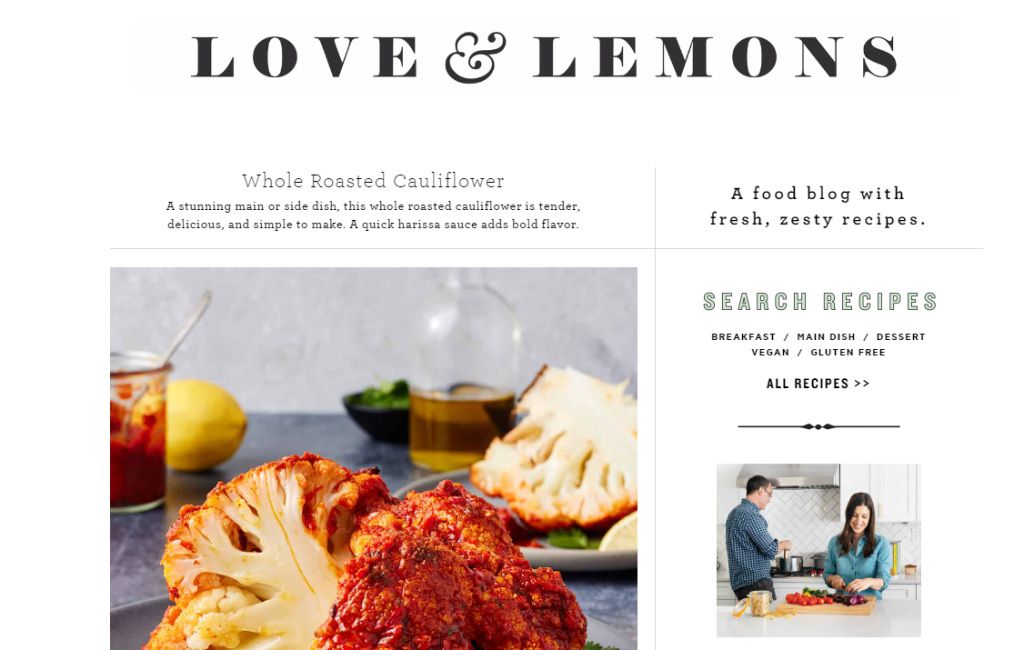 - “Love and Lemons” is a vegetarian food blog with a focus on fresh, seasonal ingredients and colorful, vibrant recipes. There are some interesting twists like a savoury porridge which are well worth a try.