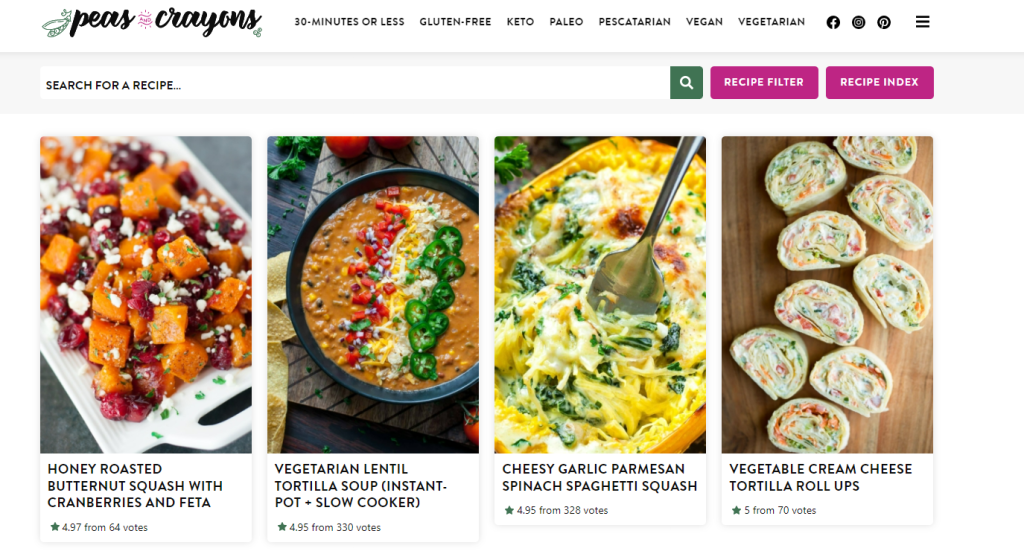 - “Peas and Crayons” – this food blog features a mix of healthy meals and indulgent comfort food.