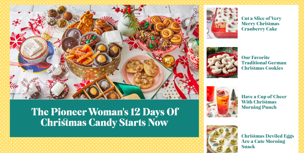 - “The Pioneer Woman” features delicious home-cooked meals, hearty comfort food, and easy weeknight dinners. There are curated healthy recipes and some more indulgent treats too.