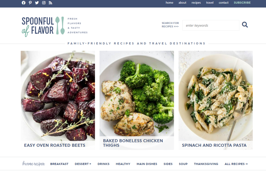 - “Spoonful of Flavor” – this food blog features a mix of comfort food, healthy meals, and indulgent desserts.