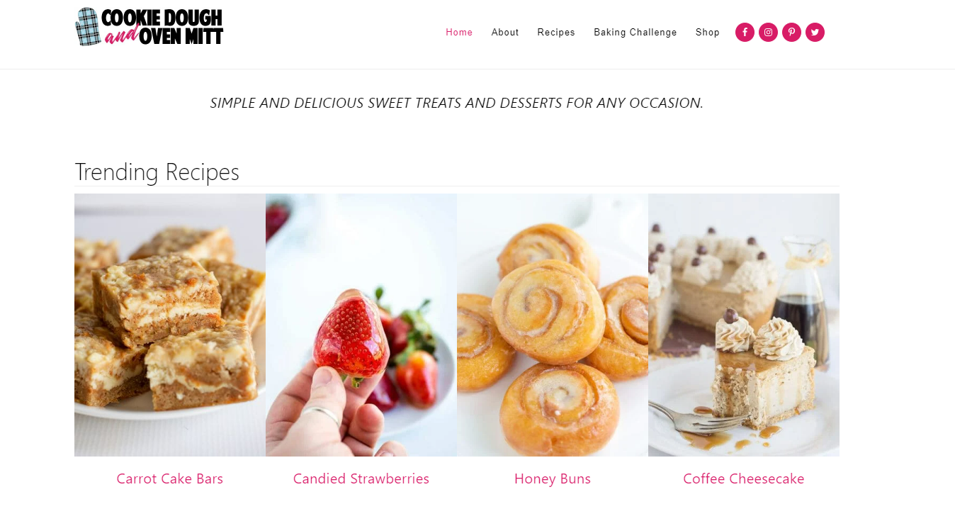 - “Cookie Dough and Oven Mitt” is a food blog featuring a mix of comfort food, healthy meals, and indulgent desserts.