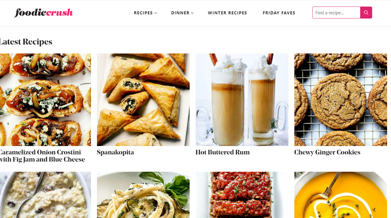 - “Foodie Crush” is a food blog with a mix of comforting classics and modern twists on familiar dishes. There are foods from Mexican and Italian origin, as well as some interesting drinks to try out.