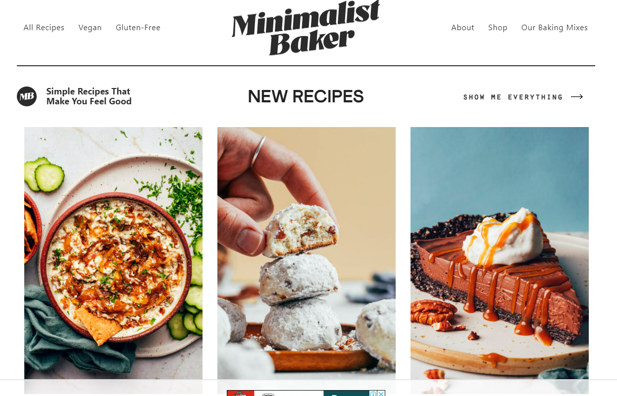 - “Minimalist Baker” is a vegan food blog with a focus on simple, plant-based recipes that require just 10 ingredients or less.